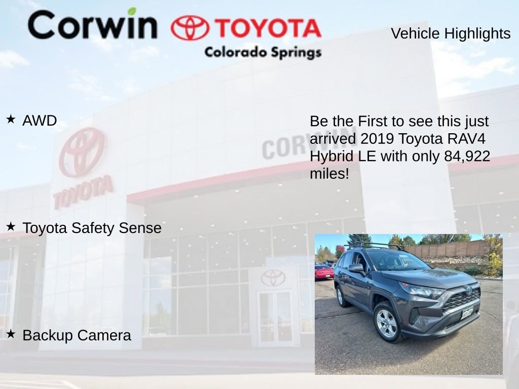 This Toyota RAV4 Hybrid is well equipped and includes the following features and benefits, AWD, Toyota Safety Sense, Backup Camera. 41/38 City/Highway MPG