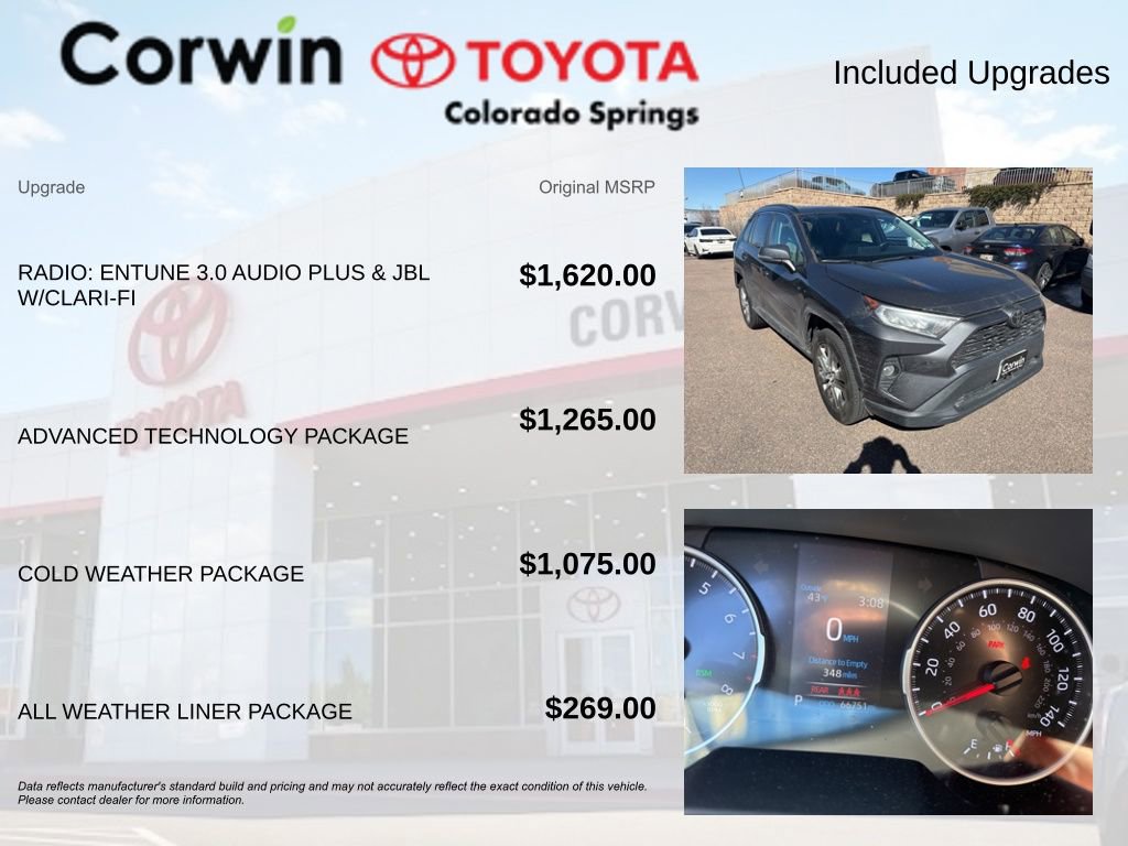 Safety is a top priority, and this RAV4 XLE Premium is equipped with a comprehensive suite of advanced safety technologies, including the Toyota Safety Sense 2.0 system, which includes features like Pre-Collision System with Pedestrian Detection, Lane Departure Alert with Steering Assist, and Automatic High Beams.