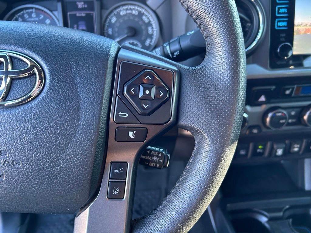 Step inside the Tacoma TRD Pro, and you'll be greeted by a cabin that exudes both ruggedness and refinement. The leather-trimmed seats with heated front buckets offer exceptional comfort and support, while the leather-wrapped steering wheel with audio controls puts all the essential functions at your fingertips.