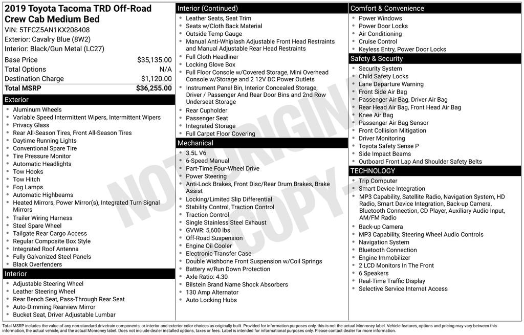 2019 Blue Toyota Tacoma