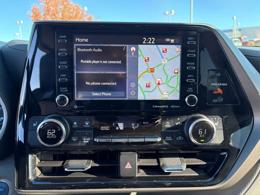 This Toyota Highlander Hybrid is well equipped and includes the following features and benefits, Hybrid XLE, Premium Audio, 8" Touch Screen, Dynamic Navigation, SofTex-Trimmed Seating, Power & Heated Front Seats, Qi-Wireless Smartphone Charger, Auto-Dimming Mirror w/HomeLink, 18" Machined-Finish Alloy Wheels w/ Temporary Spare. 35/34 City/Highway MPG