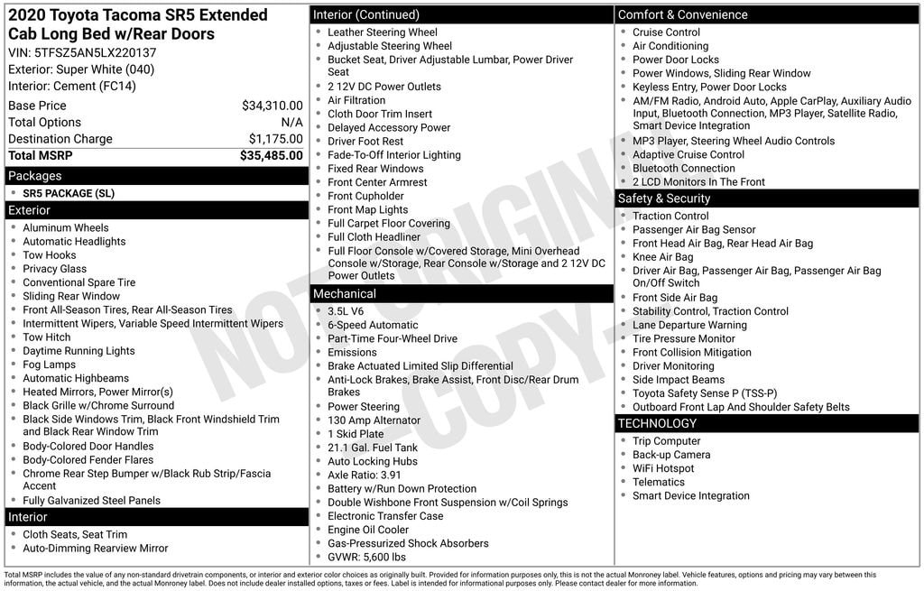 Discover the ultimate blend of capability, technology, and style with this 2020 Toyota Tacoma SR5 V6. Experience the difference for yourself by scheduling a test drive today. We're confident this truck will exceed your expectations and become an indispensable part of your adventures.