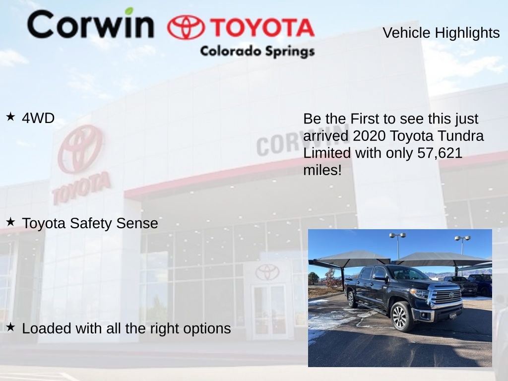 This Toyota Tundra is well equipped and includes the following features and benefits, 4WD, Toyota Safety Sense, Loaded with all the right options.