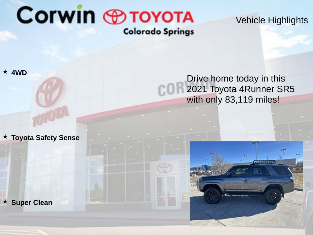 This Toyota 4Runner is well equipped and includes the following features and benefits, 4WD, Toyota Safety Sense, Super Clean.