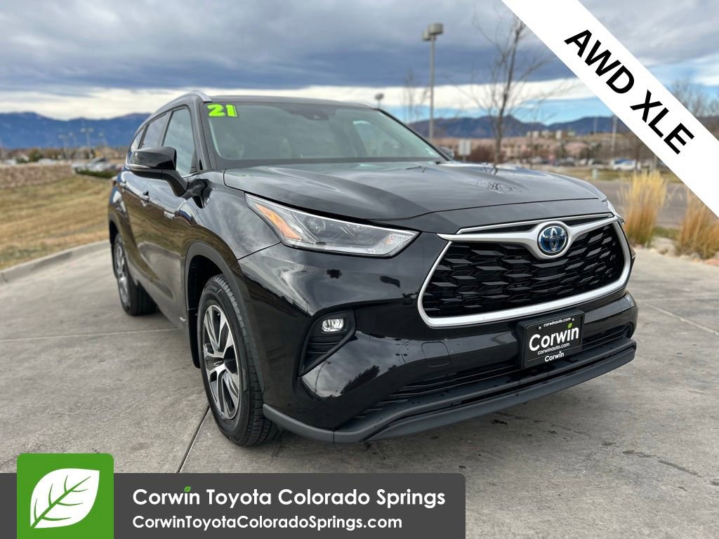 2021 Midnight Black Metallic Toyota Highlander Hybrid XLE Clean CARFAX.