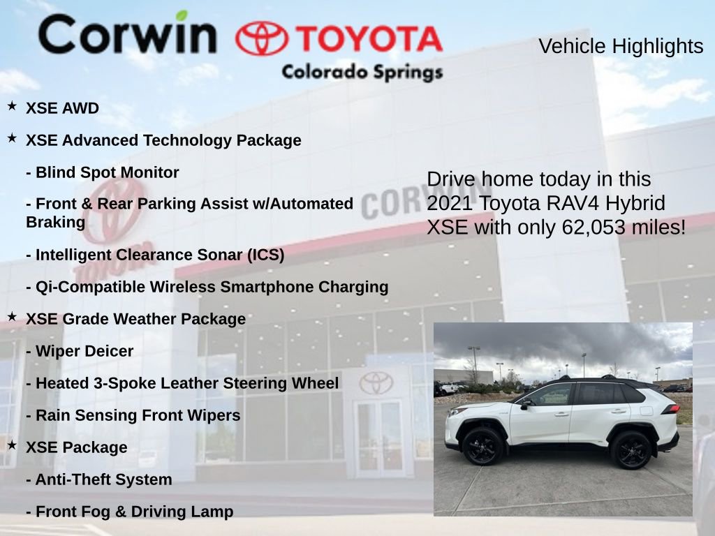 2021 Midnight Black Metallic Toyota RAV4 Hybrid XSE CARFAX One-Owner.