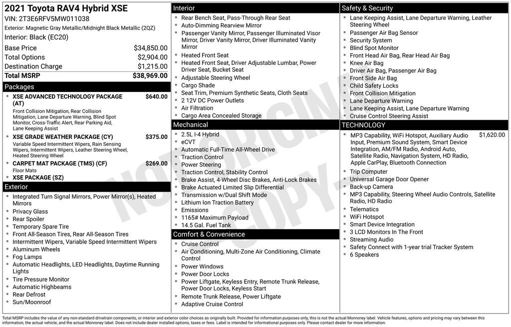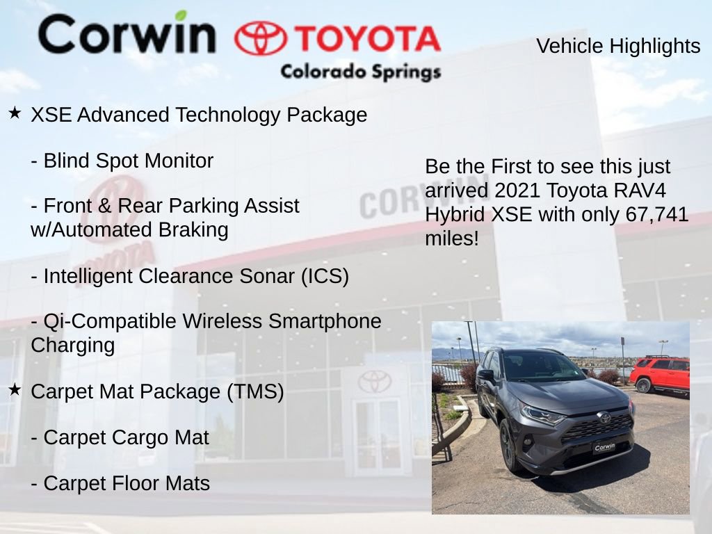 With its blend of efficiency, technology, and premium features, this 2021 Toyota RAV4 Hybrid XSE is a compelling choice for discerning SUV buyers. We invite you to experience its impressive capabilities firsthand by scheduling a test drive at our showroom. Let us demonstrate how this exceptional RAV4 Hybrid can elevate your driving experience.