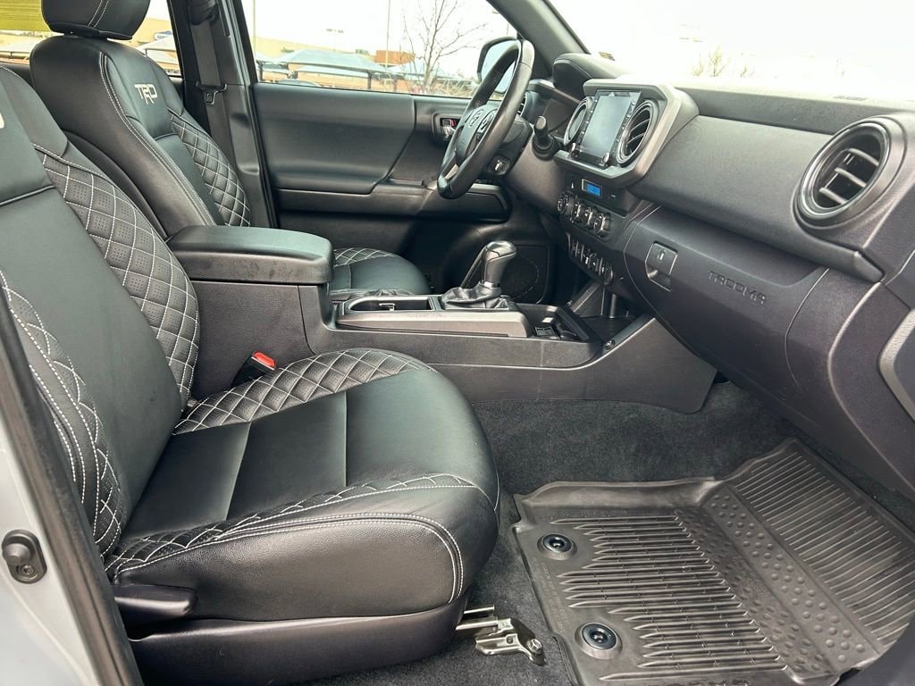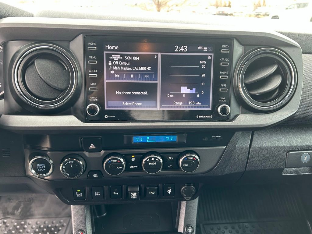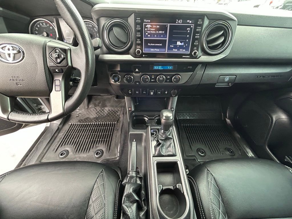 Elevate your driving experience with the advanced features of this Tacoma. Enjoy the convenience of Apple CarPlay and Android Auto, the safety of Toyota Safety Sense, and the comfort of dual-zone automatic climate control. The power-adjustable driver's seat and leather-wrapped steering wheel add a touch of refinement, while the blind spot monitoring and rear cross-traffic alert systems provide added peace of mind.