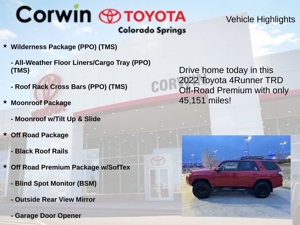 This exceptional 2022 Toyota 4Runner TRD Off-Road Premium is the perfect companion for those who seek adventure and demand the very best. Experience the difference for yourself by scheduling a test drive today. We're confident you'll be impressed by this remarkable SUV's capabilities and the unparalleled value it offers.