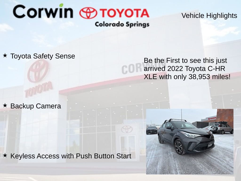Discover the perfect blend of style, technology, and versatility in the 2022 Toyota C-HR XLE. This exceptional crossover SUV offers a dynamic driving experience combined with a host of premium features that elevate your daily commute and weekend adventures.