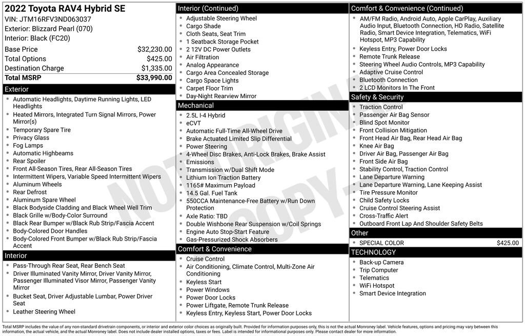 Discover the perfect blend of efficiency, capability, and style with this 2022 Toyota RAV4 Hybrid SE. This exceptional SUV offers an unbeatable combination of advanced technology, exceptional fuel economy, and versatile performance, making it the ideal choice for the modern driver.