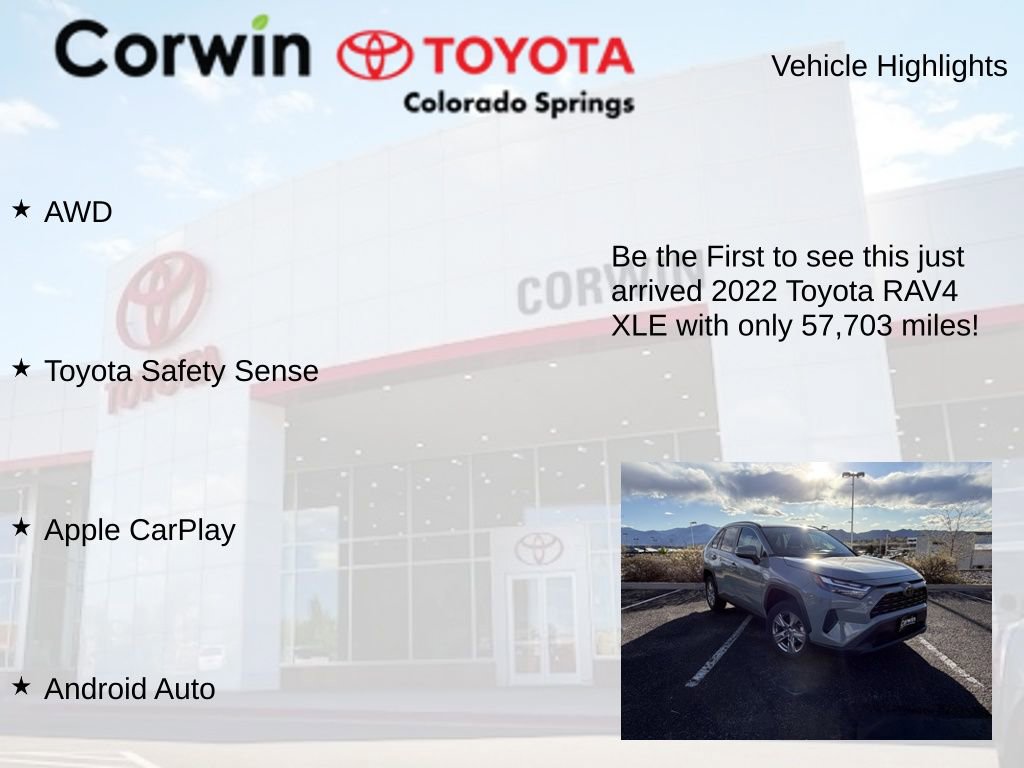 Whether you're navigating city streets or exploring the open road, the 2022 Toyota RAV4 XLE is the perfect companion. Experience the perfect blend of practicality, technology, and performance that this compact SUV has to offer. Visit our showroom today to take this remarkable vehicle for a test drive and discover why the RAV4 XLE should be your next automotive companion.