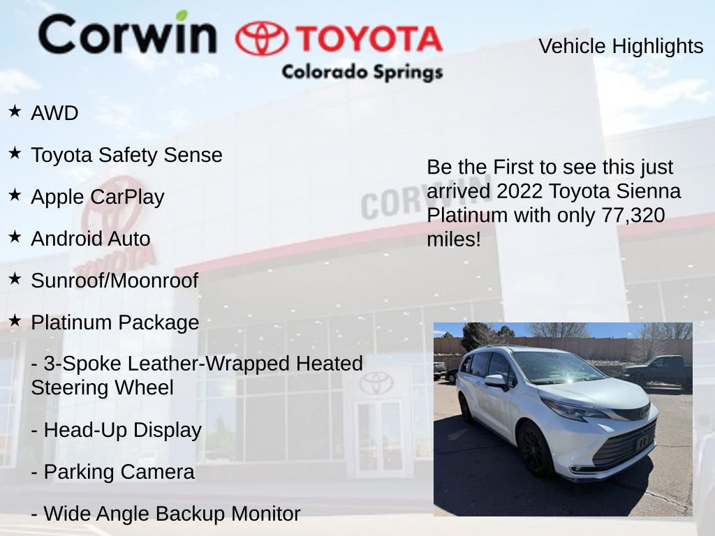 Discover the ultimate family-friendly SUV with the 2022 Toyota Sienna Platinum 7 Passenger. This exceptional vehicle combines style, performance, and unparalleled comfort, making it the perfect choice for your next adventure.