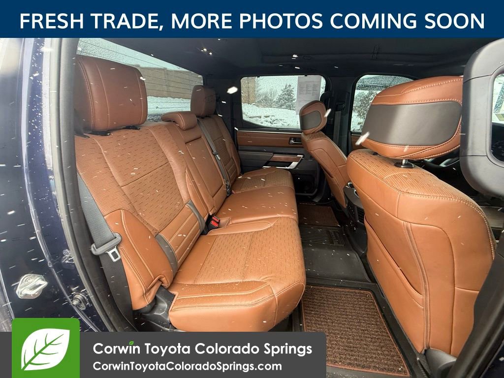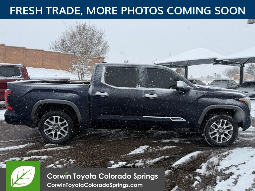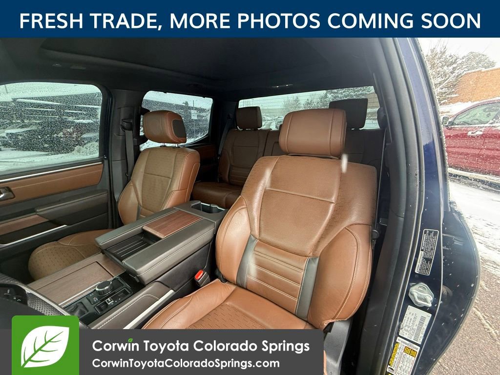 This Toyota Tundra Hybrid is well equipped and includes the following features and benefits, Advanced Package, Power running boards and power bed step, 14-in Audio Multimedia, with 12 Speaker JBL Premium Audio including subwoofer and amplifier,and wireless Apple CarPlay and Android Auto capability. SiriusXM w/3-Month Platinum Plan Trial, Leather-Trimmed 10-Way Power-Adjustable Driver/FR-Pass Seat w/4-way Power Lumbar, Heated and Ventilated Front & Rear Seats, Power Tilt/Slide Panoramic Roof, Advanced Package, Color Head Up Display, Load-Leveling Rear Height Control Air Suspension. Odometer is 9385 miles below market average!
