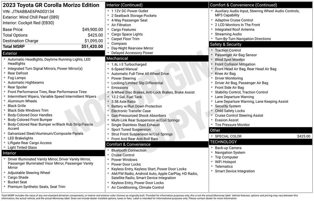 Elevate your commute and weekend adventures with the impressive fuel efficiency, delivering 21 mpg in the city and 28 mpg on the highway. The Toyota GR Corolla Morizo Edition is not just a vehicle; it's a driving experience that will ignite your passion for the road.