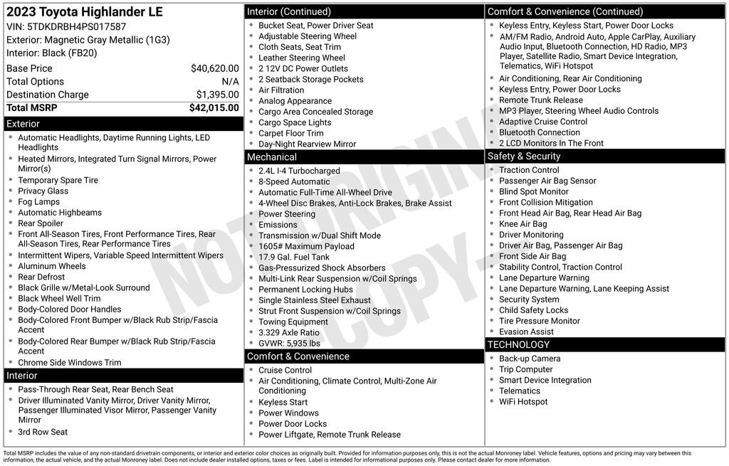 Priced below KBB Fair Purchase Price! 2023 Magnetic Gray Metallic Toyota Highlander LE CARFAX One-Owner.