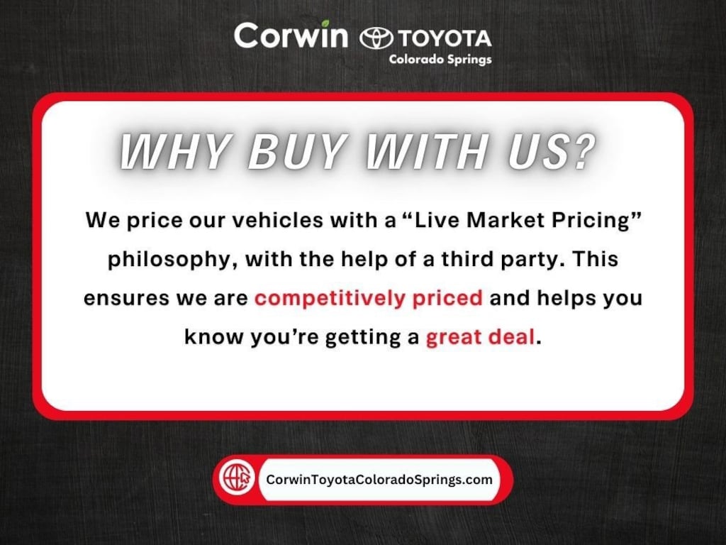 Friendly service, a huge selection of new Toyota vehicles, and fast flexible financing options are a few of the reasons why we are the new and pre-owned vehicle leaders in the greater Colorado Springs Area. Call us or stop in and see us today at Corwin Toyota Colorado Springs! Located at 5115 New Car Dr. Colorado Springs, CO 80923. (719) 598-2222 or visit us online at CorwinToyotaColoradoSprings.com. All prices must be verified with the dealer.