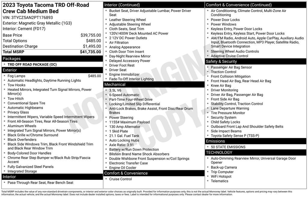 **The final price includes a $699 Dealer Doc Fee. Actual vehicle price and payments may vary for various reasons, including but not limited to, applicable manufacturer rebates, special limited time offers, dealer incentives, taxes, fees, buyer's credit qualifications, and parts or accessories installed by dealer. Listed price for the vehicle does not include sales tax, finance charges, cost of emissions test, governmental fees or taxes, tags, title, registration and transportation costs, incurred after sale, to deliver the vehicle to the purchaser at the purchaser's request. Sales prices do not include college grad or military rebates. All prices, specifications and availability subject to change without notice. Contact dealer for most current information. Actual vehicle price and payments may vary for various reasons, including but not limited to, applicable manufacturer rebates, special limited time offers, dealer incentives, taxes, fees, and buyer's credit qualifications. Listed price for the vehicle does not include government fees, taxes, title fees, licensing fees, any dealer documentation fees, any emission, inspection or other testing fees. All prices, specifications and availability subject to change without notice. Contact dealer for most current information. Although every reasonable effort has been made to ensure the accuracy of the information contained on our website, absolute accuracy cannot be guaranteed. This site, and all information and materials appearing on it, are presented to the user 'as is' without warranty of any kind, either express or implied, including but not limited to the implied warranties of merchantability, fitness for a particular purpose, title or non-infringement. All vehicles are subject to prior sale. Not responsible for typographical errors. The monthly payments and payment terms are ESTIMATES AND EXAMPLES ONLY. Monthly payments and terms are based on approved credit and NOT ALL CUSTOMERS WILL QUALIFY FOR THE RATES OR TERMS INDICATED. Payment estimates are based on featured price for a vehicle and ACTUAL PRICE AND PAYMENTS MAY BE DIFFERENT due to applicable rebates, cash down payments, trade-in allowances, financing rates and terms, specials, taxes, fees and buyer's credit qualifications.