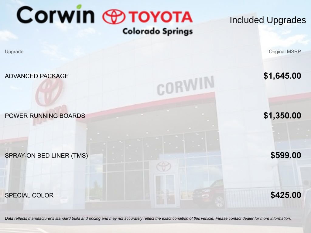 Friendly service, a huge selection of new Toyota vehicles, and fast flexible financing options are a few of the reasons why we are the new and pre-owned vehicle leaders in the greater Colorado Springs Area. Call us or stop in and see us today at Corwin Toyota Colorado Springs! Located at 5115 New Car Dr. Colorado Springs, CO 80923. (719) 598-2222 or visit us online at CorwinToyotaColoradoSprings.com. All prices must be verified with the dealer.