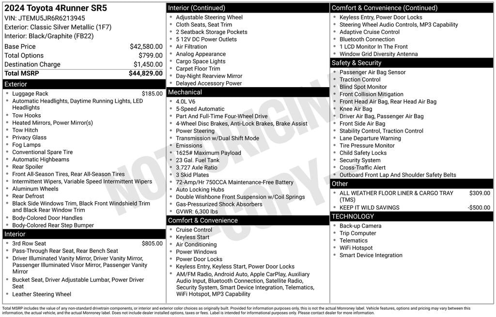 Whether you're embarking on a family adventure, tackling the great outdoors, or simply commuting in style, this 2024 Toyota 4Runner SR5 is the perfect companion. Experience the perfect blend of power, capability, and refined sophistication. Visit our showroom today and let us help you discover the true potential of this exceptional SUV.