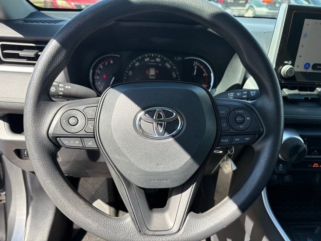 This Toyota RAV4 is well equipped and includes the following features and benefits, AWD, Pre-Collision System (PCS) w/Intersection Support Lane Change Assist (LCA)/Lane Tracing Assist (LTA) Dual Stage Driver And Passenger Front Airbags Outboard Front Lap And Shoulder Safety Belts -inc: Rear Center 3 Point, Height Adjusters and Pretensioners Back-Up Camera Lane Tracing Assist (LTA) Side Impact Beams Dual Stage Driver And Passenger Seat-Mounted Side Airbags Collision Mitigation-Front Low Tire Pressure Warning Curtain 1st And 2nd Row Airbags Airbag Occupancy Sensor Driver Knee Airbag and Passenger Cushion Front Airbag Rear Child Safety Locks, Clearcoat Paint Liftgate Rear Cargo Access Body-Colored Front Bumper w/Black Rub Strip/Fascia Accent Black Rear Bumper w/Black Rub Strip/Fascia Accent Black Bodyside Cladding and Black Wheel Well Trim Chrome Side Windows Trim and Black Front Windshield Trim Body-Colored Door Handles Black Power Side Mirrors w/Manual Folding Fixed Rear Window w/Fixed Interval Wiper and Defroster Deep Tinted Glass Fixed Interval Wipers Galvanized Steel/Aluminum Panels Lip Spoiler Black Grille w/Body-Color Surround Compact Spare Tire Mounted Inside Under Cargo Steel Spare Wheel Tires: 225/65R17 AS Wheels: 17" Steel Projector Beam Led Low/High Beam Daytime Running Auto High-Beam Headlamps LED Brakelights Headlights-Automatic Highbeams Laminated Glass Fixed Rear Window w/Wiper and Defroster Fixed Rear Window w/Yes Wiper and Defroster Non-Metallic Paint, Front Map Lights HVAC -inc: Underseat Ducts Full Floor Console w/Covered Storage, Mini Overhead Console w/Storage and 2 12V DC Power Outlets Driver And Passenger Visor Vanity Mirrors Day-Night Rearview Mirror Urethane Gear Shifter Material Cloth Door Trim Insert Full Cloth Headliner Interior Trim -inc: Metal-Look Interior Accents Driver Foot Rest Glove Box Digital/Analog Appearance Fade-To-Off Interior Lighting Full Carpet Floor Covering Carpet Floor Trim Cargo Area Concealed Storage Cargo Space Lights Tracker System Smart Device Integration Instrument Panel Bin, Driver And Passenger Door Bins Delayed Accessory Power Driver Information Center Outside Temp Gauge Distance Pacing w/Traffic Stop-Go. Odometer is 6742 miles below market average! 27/34 City/Highway MPG