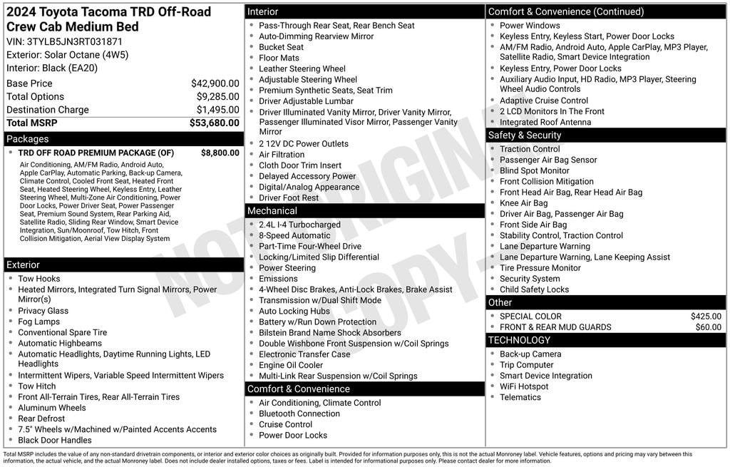 This Tacoma is more than just a truck it's a versatile, feature-packed companion that will elevate your driving experience. With the TRD Off-Road Premium Package, you'll enjoy advanced off-road capabilities, cutting-edge technology, and premium comfort features that will make every journey a pleasure.