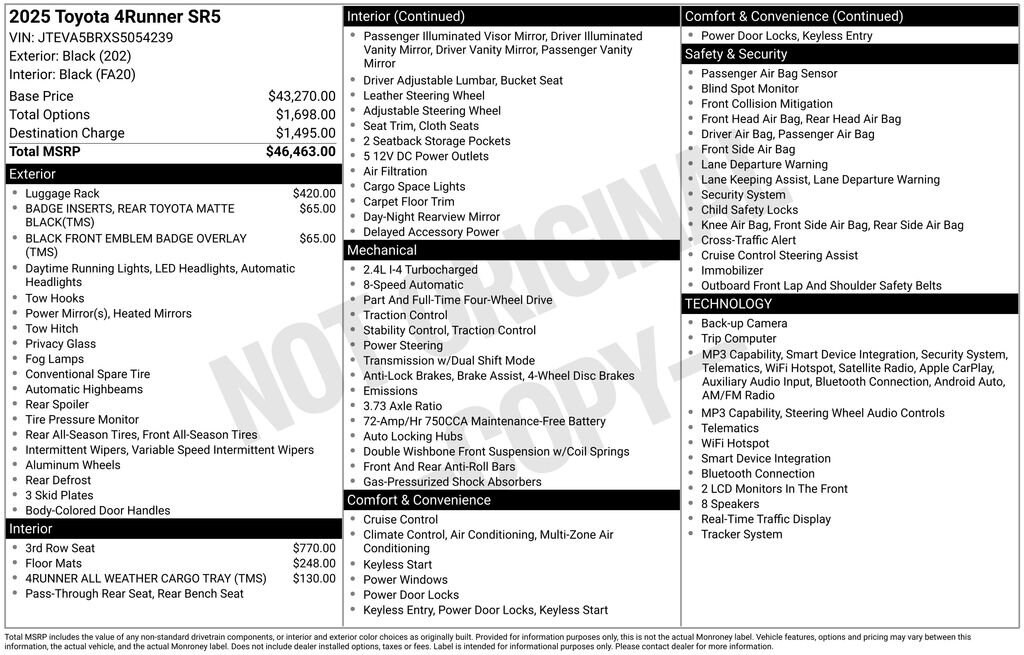 Don't miss out on the opportunity to own this exceptional 2025 Toyota 4Runner SR5. Visit our showroom today and let us help you drive home in the SUV of your dreams.