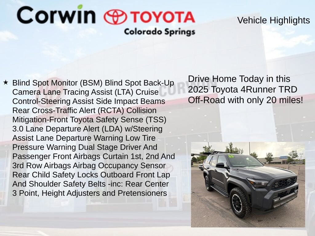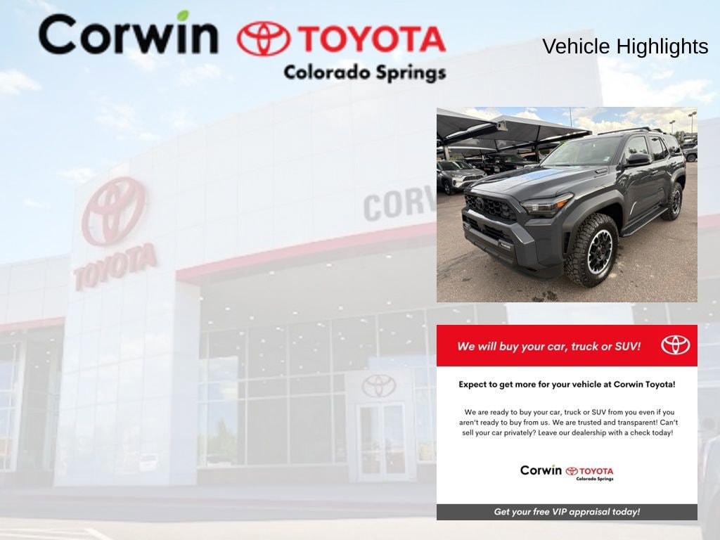 Friendly service, a huge selection of new Toyota vehicles, and fast flexible financing options are a few of the reasons why we are the new and pre-owned vehicle leaders in the greater Colorado Springs Area. Call us or stop in and see us today at Corwin Toyota Colorado Springs! Located at 5115 New Car Dr. Colorado Springs, CO 80923. (719) 598-2222 or visit us online at CorwinToyotaColoradoSprings.com. All prices must be verified with the dealer.