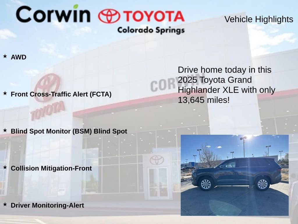 This Toyota Grand Highlander is well equipped and includes the following features and benefits, AWD, Front Cross-Traffic Alert (FCTA), Blind Spot Monitor (BSM) Blind Spot, Collision Mitigation-Front, Driver Monitoring-Alert. Odometer is 1057 miles below market average!