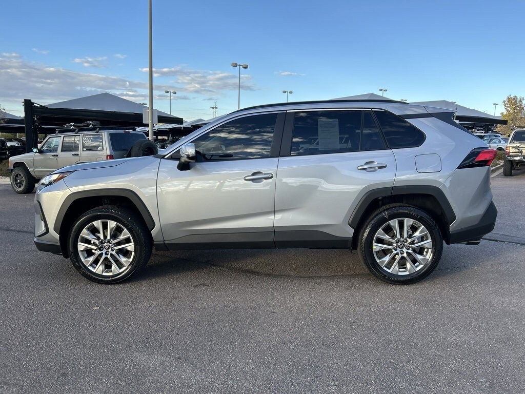 This Toyota RAV4 is well equipped and includes the following features and benefits, AWD, XLE premium grade weather package heated steering wheel and heated front seats 8-way power-adjustable driver's seat with two-position memory function and lumbar support rain-sensing variable intermittent windshield wipers with de-icer function, blackout emblem overlays molded from tough and durable black abs plastic, blackout emblem overlays are engineered to precisely fit over existing badges, making it easy to customize in minutes. designed to fit permanently over existing chrome badging for gas models, 8-in. Toyota Audio Multimedia w/ 6-Speakers, Wireless Apple CarPlay & Android Auto Compatibility SiriusXM w/ 3-Month Trial 5 USB Ports Dual Zone Auto A/C w/ Rear Air Vents SofTex-Trimmed Seats Power Driver's Seat Smart Key System w/ Push Button Start For Full Product Details, Please Visit Toyota.com/RAV4 Front-door storage pockets with bottle holders Sun visors with sliding extensions and illuminated vanity mirrors Black carpet flooring with driver-side footrest Day/night rearview mirror Electric Parking Brake (EPB) with Brake Hold One 12V/120W auxiliary power outlet in front instrument panel storage tray and one 12V/120W auxiliary power outlet in cargo area Five USB ports USB media port in front storage tray and four additional charge ports (two in front center console and two rear seat ports on the back of center console) Power windows with auto up/down and jam protection in all positions 60/40 split reclining fold-flat rear seat with center armrest and cup holders Soft-touch dash and armrests, with stitched dash and center console accents, and anti-slip interior door grip Black anti-slip in-dash storage trays Ash Gray fabric-trimmed headliner Smart Key System on front doors and liftgate with Push Button Start, remote keyless entry system with lock, unlock, and panic functions, power liftgate and remote illuminated entry Dual zone automatic climate control system with dust and pollen filter, front center vent flow controls and rear-seat vents Digital speedometer and instrumentation with analog tachometer, coolant temperature, and fuel gauges; 7-in. digital Multi-Information Display (MID) with customizable settings, odometer, tripmeters, clock, outside temperature, rear passenger seatbelt indicators, fuel economy information, trip timer, shift-position and scheduled maintenance indicators, and warning messages Leather-trimmed shift lever with sequential mode Power door locks with shift-linked automatic lock/unlock feature Turn signal stalk with headlight controls and one-touch 3-blink lane change turn signals Leather-trimmed tilt/telescopic 3-spoke steering wheel with silver accent and controls for audio, Multi-Information Display (MID, Bluetooth® hands-free phone, voice-command, Dynamic Radar Cruise Control (DRCC), Lane Departure Alert (LDA), and Lane Trace Assist (LTA) Silver interior door handles Overhead console with maplights, sunglasses storage, Safety Connect® button and power tilt/slide moonroof controls 8-in. Toyota Audio Multimedia, six speakers, with wireless Apple CarPlay® & Android AutoTM compatible, SiriusXM® with 3-month trial. See toyota.com/audio-multimedia for details., 3 Spoke Leather Heated Steering Wheel, Driver Seat w/2-Position Memory Function, Front Seat Heating, Weather Package, XLE Premium Package. 27/33 City/Highway MPG