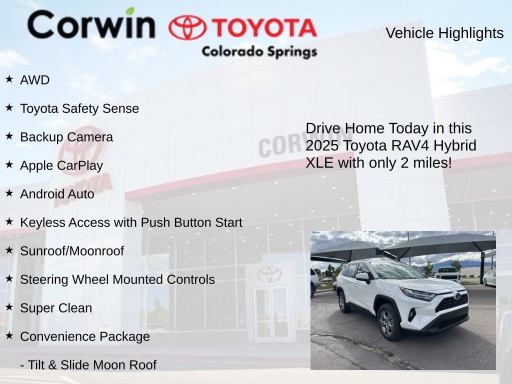 2025 Ice Cap Toyota RAV4 Hybrid XLE CARFAX One-Owner. Clean CARFAX.