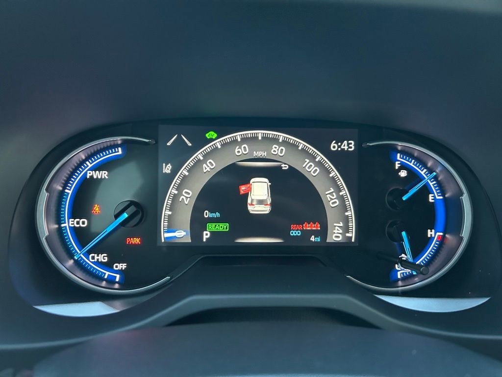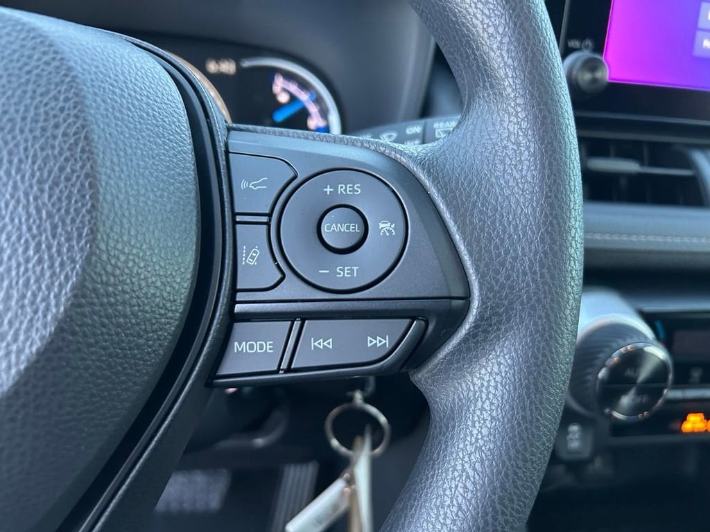 This Toyota RAV4 Hybrid is well equipped and includes the following features and benefits, Hybrid AWD, 17-in. 5-spoke light gray metallic alloy wheels, Drive Modes: Drive mode dial with SPORT, Eco, and NORMAL modes, EV Mode, and TRAIL mode, Toyota Safety SenseTM 2.5 Pre-Collision System w/Pedestrian Detection , Full-Speed Range Dynamic Radar Cruise Control , Lane Departure Alert w/Steering Assist , Lane Tracing Assist , Automatic High Beams , Road Sign Assist, Backup camera with dynamic gridlines. 41/38 City/Highway MPG