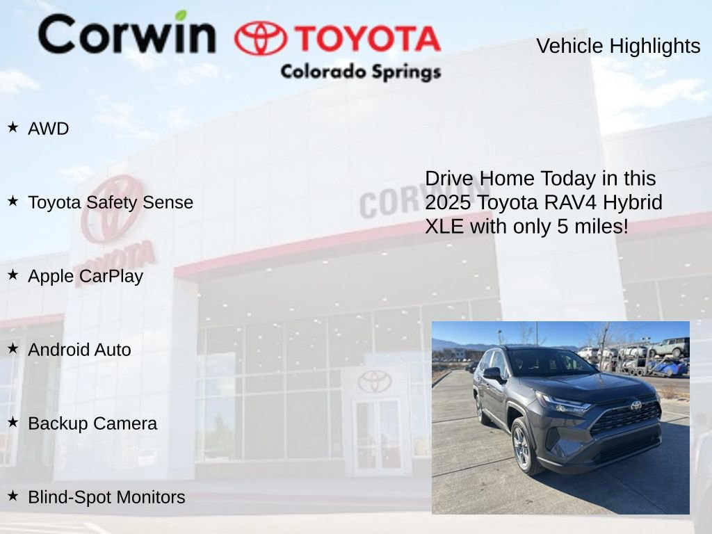 This Toyota RAV4 Hybrid is well equipped and includes the following features and benefits, AWD, Toyota Safety Sense, Apple CarPlay, Android Auto, Backup Camera, Blind-Spot Monitors. 41/38 City/Highway MPG