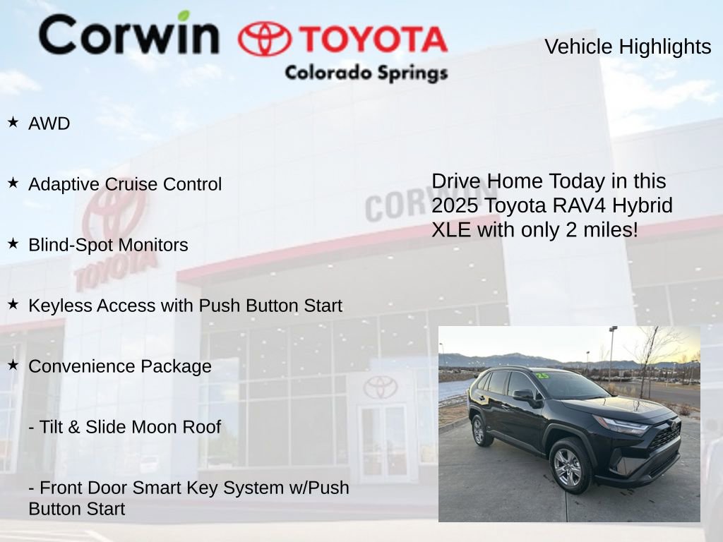 Discover the perfect blend of style, technology, and efficiency with the 2025 Toyota RAV4 Hybrid XLE. This exceptional SUV is designed to elevate your driving experience, offering a seamless combination of power, comfort, and advanced features.