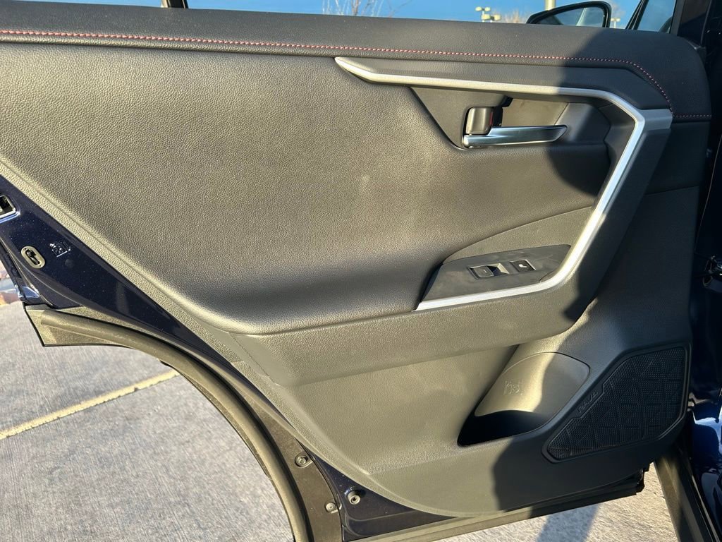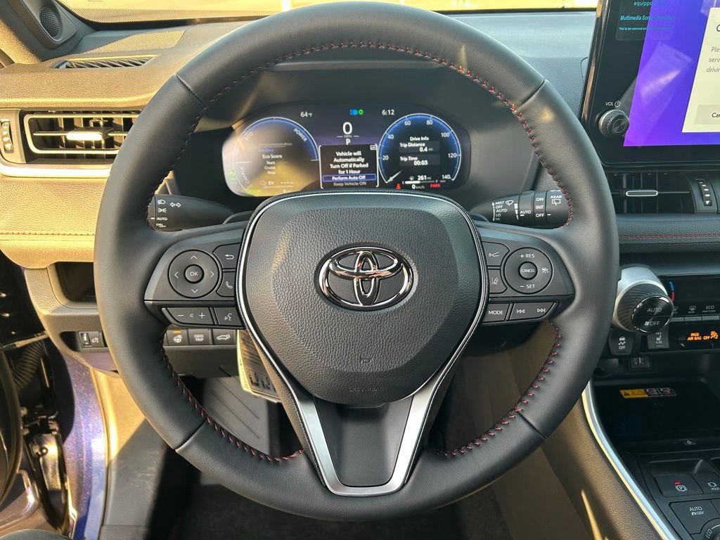 This Toyota RAV4 Plug-In Hybrid is well equipped and includes the following features and benefits, Plug-in Hybrid XSE, Rear Outboard Heated Seating, Auto-dimming rearview mirror with HomeLink® universal transceiver, Leather-trimmed tilt/telescopic 3-spoke steering wheel with silver accent and red-stitching, paddle shifters, and controls for audio, Multi-Information Display (MID), Bluetooth® hands-free phone, voice-command, Dynamic Radar Cruise Control (DRCC), Lane Departure Alert (LDA) and Lane Trace Assist (LTA), Heated front seating, SofTex®-trimmed seats with sporty red stitching and fabric seat inserts; heated front seats; 8-way power-adjustable front driver's seat with lumbar support and seatback pocket; 4-way adjustable front passenger seat with seatback pocket, 11-speaker JBL® Premium Audio including subwoofer and amplifier, 3-Spoke Heated Leather Steering Wheel, Rain Sensing Wipers, Weather Package.