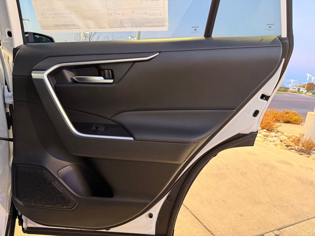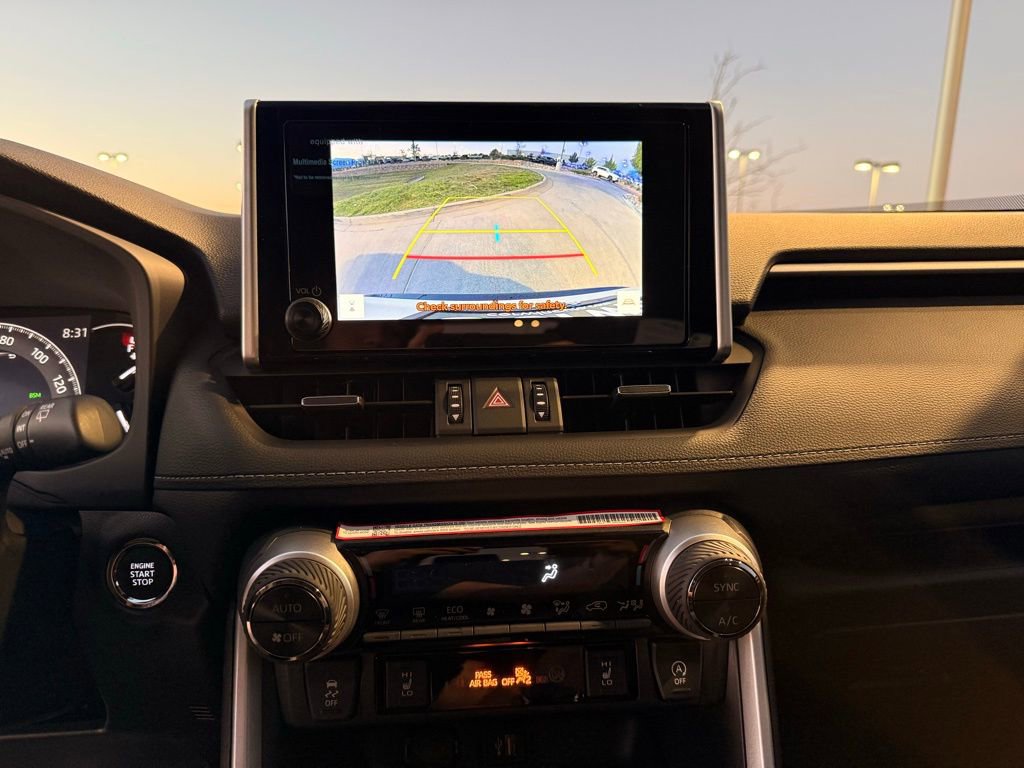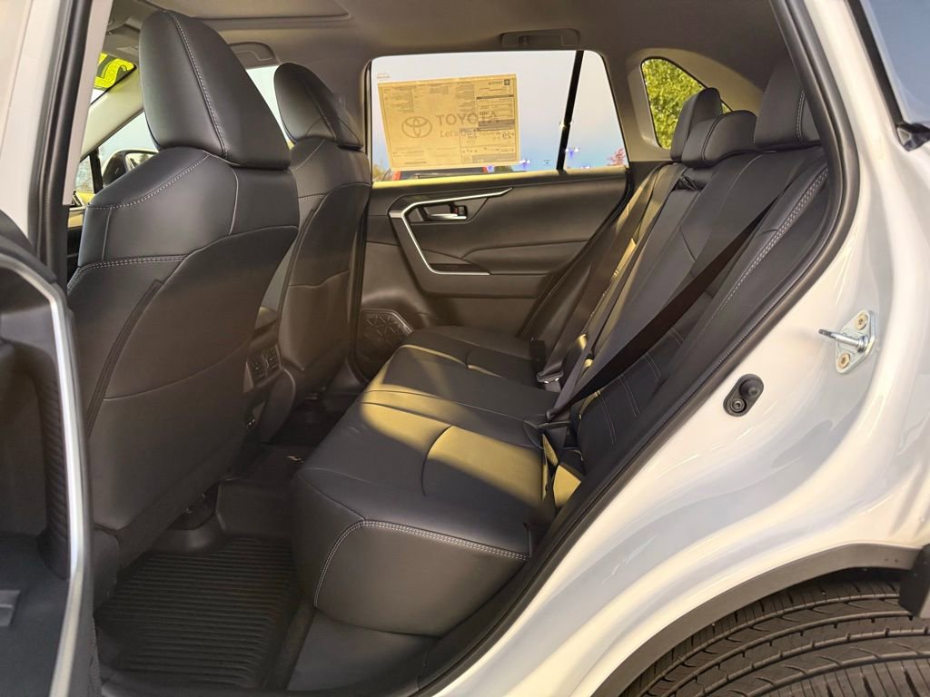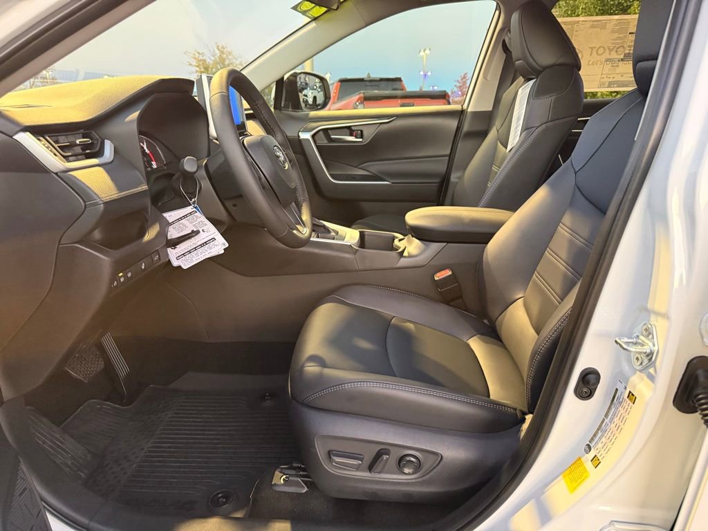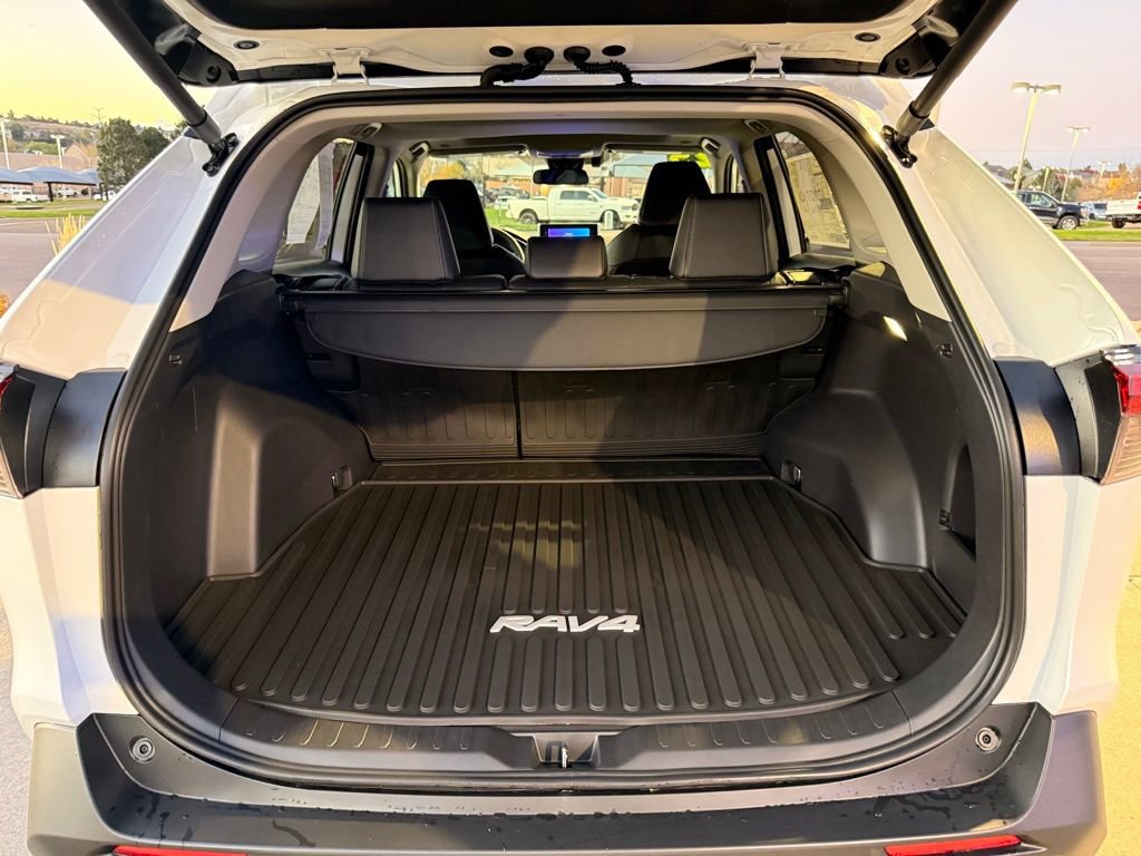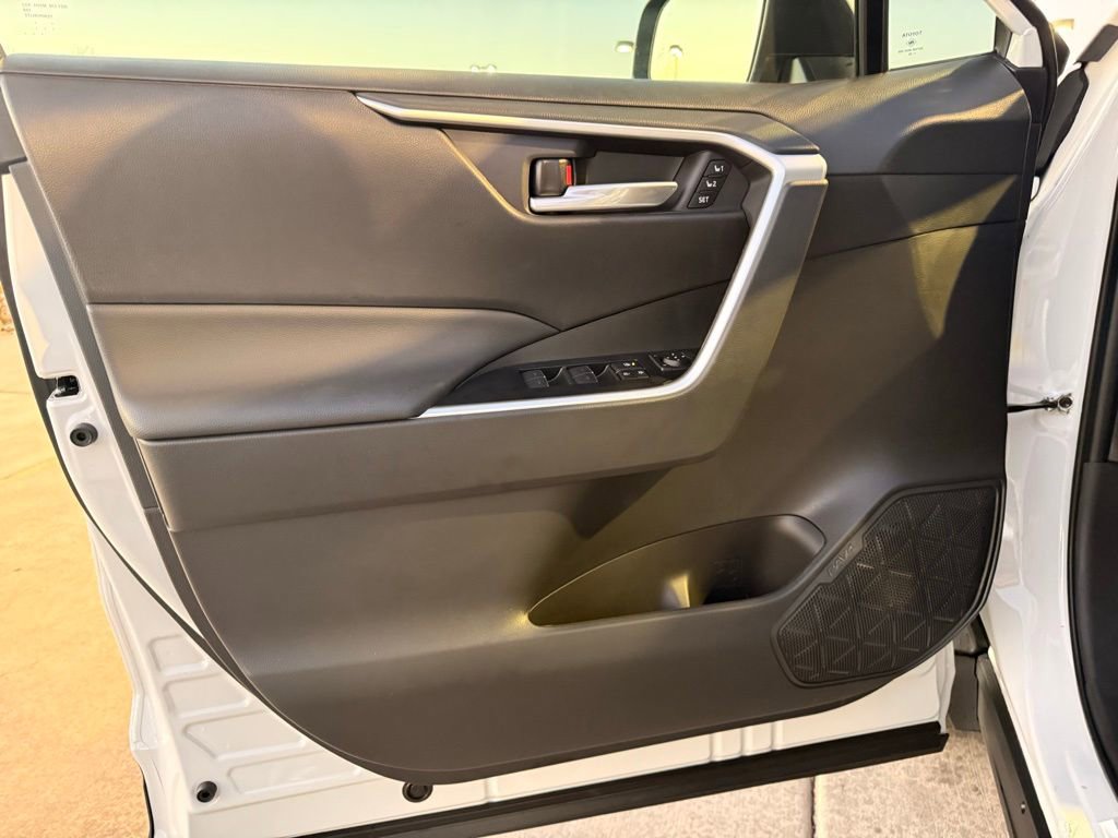 This Toyota RAV4 is well equipped and includes the following features and benefits, AWD, Rear liftgate window defogger SofTex®-trimmed seats; 8-way power-adjustable front driver's seat with lumbar support; 4-way adjustable front passenger seat with seatback pocket LED front-seat reading lights, dome light and cargo area light Height-adjustable rear cargo area deck board Cargo area tonneau cover Center console with covered storage compartment, two cup holders, drive mode, Multi-Terrain Select (MTS), Electric Parking Brake (EPB) and automatic Brake Hold controls, and front storage tray Passenger-side lockable glove compartment 2 front and 2 rear cup holders; 2 front and 2 rear bottle holders Front-door storage pockets with bottle holders Sun visors with sliding extensions and illuminated vanity mirrors Black carpet flooring with driver-side footrest Day/night rearview mirror Electric Parking Brake (EPB) with Brake Hold One 12V/120W auxiliary power outlet in front instrument panel storage tray and one 12V/120W auxiliary power outlet in cargo area Five USB ports USB media port in front storage tray and four additional charge ports (two in front center console and two rear seat ports on the back of center console) Power windows with auto up/down and jam protection in all positions 60/40 split reclining fold-flat rear seat with center armrest and cup holders Soft-touch dash and armrests, with stitched dash and center console accents, and anti-slip interior door grip Black anti-slip in-dash storage trays Ash Gray fabric-trimmed headliner Smart Key System on front doors and liftgate with Push Button Start, remote keyless entry system with lock, unlock, and panic functions, power liftgate and remote illuminated entry Dual zone automatic climate control system with dust and pollen filter, front center vent flow controls and rear-seat vents Digital speedometer and instrumentation with analog tachometer, coolant temperature, and fuel gauges; 7-in. digital Multi-Information Display (MID) with customizable settings, odometer, tripmeters, clock, outside temperature, rear passenger seatbelt indicators, fuel economy information, trip timer, shift-position and scheduled maintenance indicators, and warning messages Leather-trimmed shift lever with sequential mode Power door locks with shift-linked automatic lock/unlock feature Turn signal stalk with headlight controls and one-touch 3-blink lane change turn signals Leather-trimmed tilt/telescopic 3-spoke steering wheel with silver accent and controls for audio, Multi-Information Display (MID, Bluetooth® hands-free phone, voice-command, Dynamic Radar Cruise Control (DRCC), Lane Departure Alert (LDA), and Lane Trace Assist (LTA) Silver interior door handles Overhead console with maplights, sunglasses storage, Safety Connect® button and power tilt/slide moonroof controls 8-in. Toyota Audio Multimedia, six speakers, with wireless Apple CarPlay® & Android AutoTM compatible, SiriusXM® with 3-month trial. See toyota.com/audio-multimedia for details., 3 Spoke Leather Heated Steering Wheel, Driver Seat w/2-Position Memory Function, Front Seat Heating, Weather Package. 27/33 City/Highway MPG