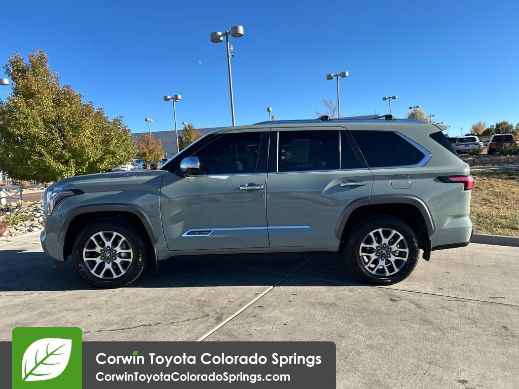 This Toyota Sequoia is well equipped and includes the following features and benefits, Lunar Rock 1794, 10-in. Head-up Display, Power Running Boards, Paint Protection Film: Hood, Fenders, Door Cups & Mirror Backs, Roof Cross Bars, Alloy Wheel Locks, 14-in. Toyota Audio Multimedia w/ Wireless Apple CarPlay & Android Auto Compatibility, Android AutoTM & Apple CarPlay® compatibility, ABS brakes, Active Cruise Control, Alloy wheels, Compass, Electronic Stability Control, Front dual zone A/C, Heated & Ventilated Front Seats, Heated door mirrors, Heated front seats, Heated rear seats, Illuminated entry, Low tire pressure warning, Power Liftgate, Power moonroof, Premium Leather Seat Trim, Remote keyless entry, Traction control. Odometer is 1046 miles below market average!