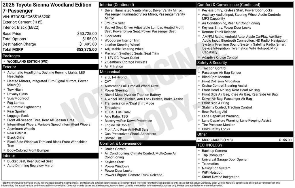 2025 Cement Toyota Sienna Woodland Edition Clean CARFAX.