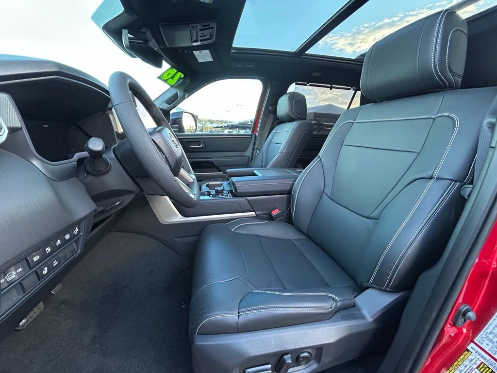 This Toyota Sequoia is well equipped and includes the following features and benefits, 4WD, Toyota Safety Sense, Apple CarPlay, Android Auto, Sunroof/Moonroof, Backup Camera, Collision Avoidance System, Cooled Seats, Heated Seats, Keyless Access with Push Button Start, Steering Wheel Mounted Controls, Third Row Seating, 4x4 Badge, ABS brakes, Active Cruise Control, Alloy wheels, Digital Display Rearview Mirror, Electronic Stability Control, Front dual zone A/C, Gloss Black Door Handles, Gloss Black Mirror Caps, Gloss Black Tailgate Handle, Gloss Black Window Molding, Heated door mirrors, Heated front seats, Illuminated entry, Leather Seat Trim, Low tire pressure warning, Navigation System, Nightshade Package, Power Liftgate, Power moonroof, Remote keyless entry, Tow Technology Package, Traction control, Wheels: 20" TRD Sport Matte-Black Alloy, Wireless Trailer Camera System.