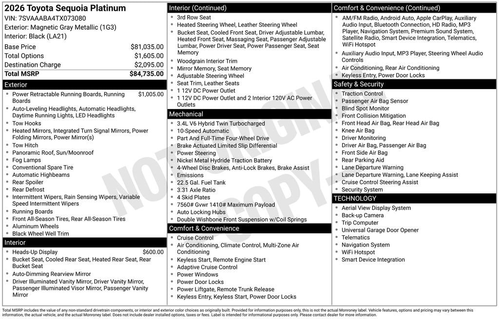 2026 Magnetic Gray Metallic Toyota Sequoia Platinum CARFAX One-Owner. Clean CARFAX.