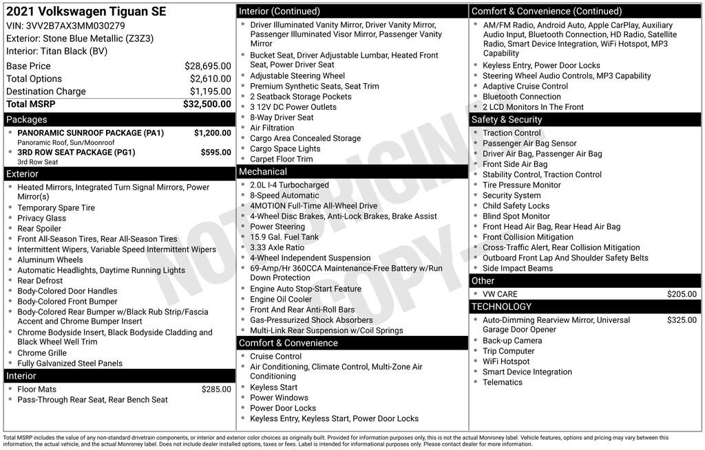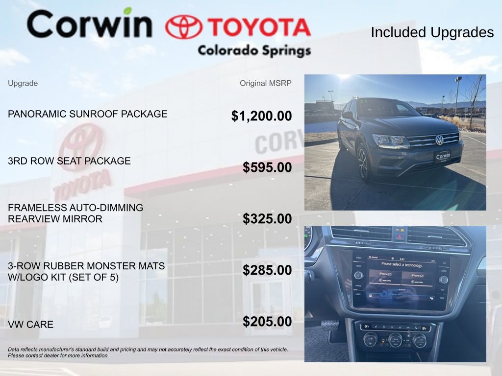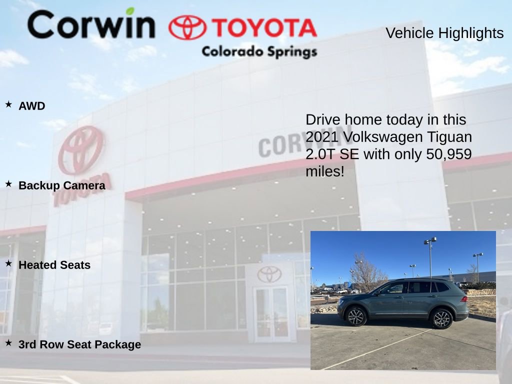 This Volkswagen Tiguan is well equipped and includes the following features and benefits, AWD, Backup Camera, Heated Seats, 3rd Row Seat Package. 21/27 City/Highway MPG